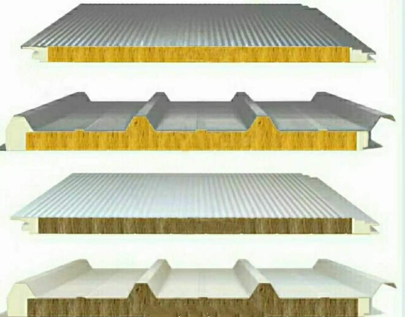 三明治夾芯板由兩片金屬板和巖棉芯材經(jīng)過(guò)加工復(fù)合而成。兩片金屬板分為外板和內(nèi)板,根據(jù)項(xiàng)目的需求,外/內(nèi)金屬板的品牌以及涂層可有不同的規(guī)格。